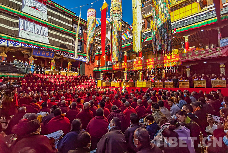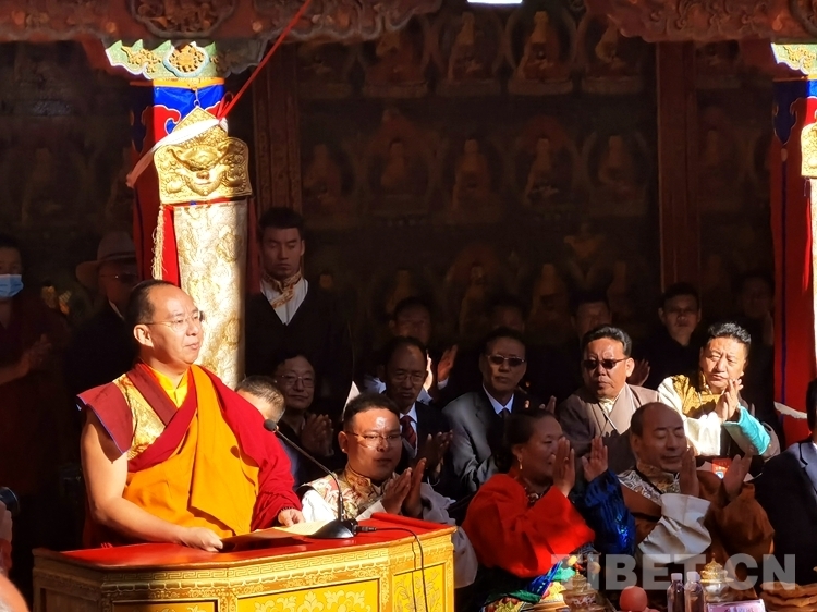 旦科代表西藏自治區(qū)黨委、政府講話:考取“嘎欽”佛學學位,是班禪額爾德尼?確吉杰布精進學識、弘法利生畢生事業(yè)中的關鍵環(huán)節(jié),是二十五年來勤學苦修、福慧俱增的直接體現(xiàn),是在宗教修為上全面成熟的重要標志,更是習近平總書記和黨中央教育培養(yǎng)的重大成果。這是扎什倫布寺的一大喜事,是藏傳佛教界的一大盛事,是寺廟僧尼、信教群眾期盼已久的一件大事。