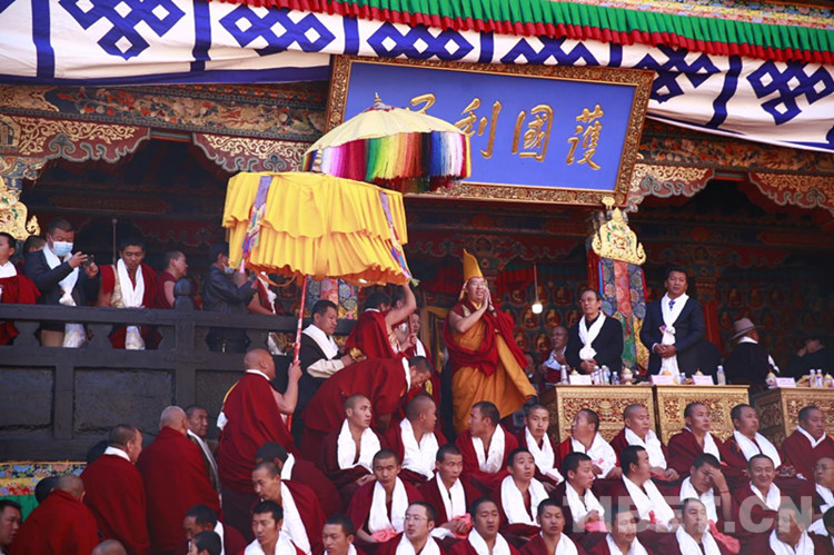 中央統(tǒng)戰(zhàn)部、國家宗教事務局賀信表示,十一世班禪自1995年坐床以來,在黨中央的親切關懷下,勤學苦修、廣聞深思,解行并進,宗教學識日益精深。特別是近日在扎什倫布寺辯經(jīng)法會上通過嚴格考試和答辯考取最高的“嘎欽”學位,標志著十一世班禪在宗教修為上取得重要成果,也充分說明了黨的宗教信仰自由政策在西藏得到全面貫徹落實。祝愿十一世班禪牢記習近平總書記的諄諄教導,繼承和發(fā)揚歷代班禪愛國愛教、護國利民的光榮傳統(tǒng),繼續(xù)刻苦學習、潛心修行,輔弼社會、饒益眾生、莊嚴國土、利樂有情,在維護祖國統(tǒng)一和民族團結、堅持藏傳佛教中國化方向、促進藏傳佛教與社會主義社會相適應上做出新的貢獻。