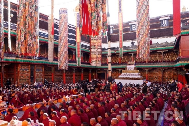 中國西藏網(wǎng)訊 日前,全國政協(xié)常委、中國佛教協(xié)會副會長、中國佛教協(xié)會西藏分會會長班禪額爾德尼?確吉杰布在扎什倫布寺順利通過考核,獲得藏傳佛教格魯派最高學位之一的“嘎欽”學位。10月28日上午10時,慶祝班禪獲得“嘎欽”佛學學位儀式在西藏自治區(qū)日喀則市扎什倫布寺多加大院舉行,近千名僧尼、信教群眾共慶盛事。