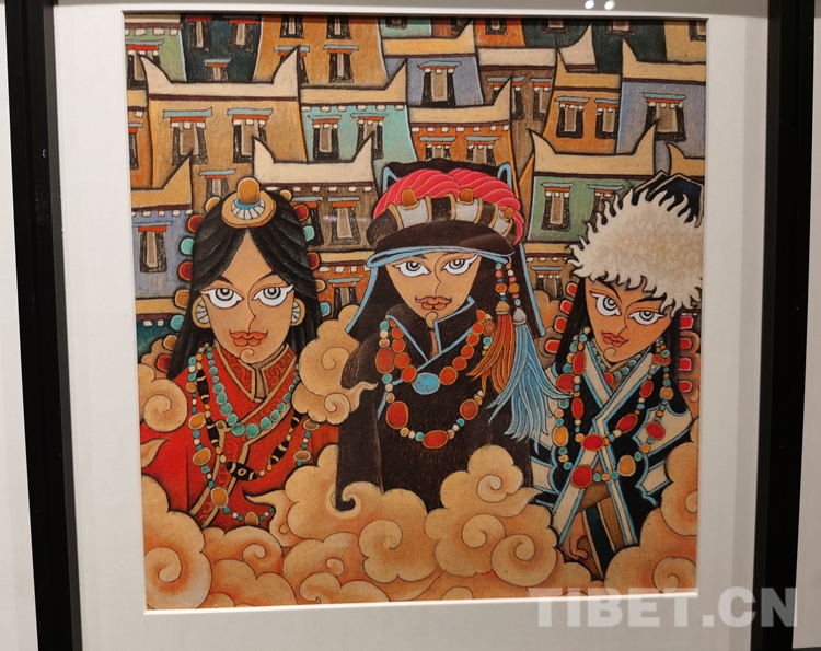 此次展覽共有39位藝術(shù)家的70多幅作品展。藝術(shù)家們在繼承西藏傳統(tǒng)的藝術(shù)形式上,利用西藏特殊元素引入各種畫種之中,并引入新的題材,讓其變得十分廣泛,同時也融合了油畫、水墨畫、水彩、雕塑等。