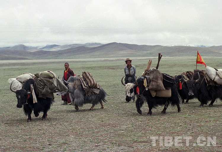 這是藏北草原正在馱物運(yùn)輸?shù)年笈H海ㄌ普倜?997年攝)