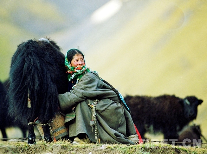 這是那曲地區(qū)(現(xiàn)那曲市)嘉黎縣一位牧女正在擠牦牛奶(唐召明1998年攝)
