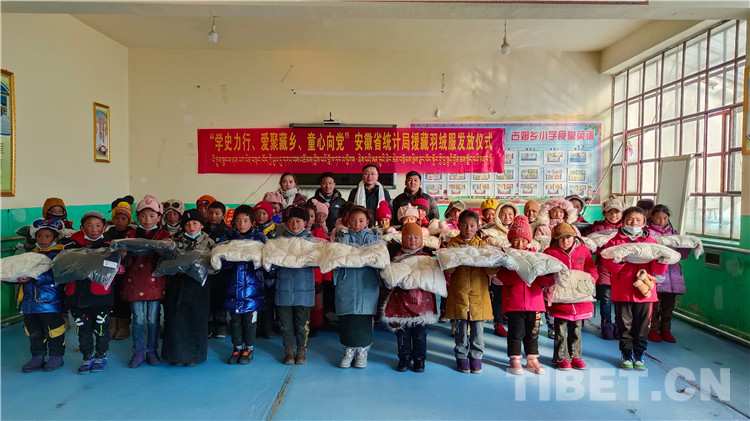 據(jù)了解,活動得到西藏自治區(qū)統(tǒng)計局、安徽省統(tǒng)計局、安徽省再貸款公司等單位企業(yè)以及愛心人士的積極響應(yīng),短短一個星期就購買到1013件羽絨服。為讓孩子們早日穿上羽絨服,援藏干部們決定立即將羽絨服送到古姆鄉(xiāng)小學。12月13日一早,他們一早就從拉薩出發(fā),日夜兼程,冒著零下二十多度的低溫大雪天氣,穿過十多個海拔5000米以上的埡口,行程1500多公里,終于在15日下午16點39分將羽絨服送到了孩子們手中,讓207名孩子在零下30多度寒冬中感受到了春天般的溫暖。