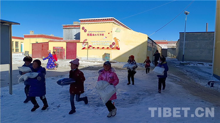 中國西藏網(wǎng)訊 “孩子們,排好隊,快到食堂去領(lǐng)羽絨服?!?央吉措姆老師高興地對一年級的學生說。待孩子們來到食堂,這里已是熱鬧一片,看到掛著“學史力行、愛聚藏鄉(xiāng)、童心向黨”愛心羽絨服發(fā)放儀式的橫幅,孩子們才恍然大悟,原來是援藏的叔叔給大家送新羽絨服來了。