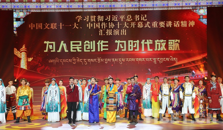 12月19日,“為人民創(chuàng)作 為時代放歌——西藏拉薩學習貫徹習近平總書記在中國文聯(lián)十一大、中國作協(xié)十大開幕式上的重要講話精神匯報演出”在西藏自治區(qū)拉薩市盛大開演。拉薩市文藝界代表和各族各界干部群眾歡聚一堂、載歌載舞,唱出新時代的旋律、舞動新時代的風采,把新時代的贊歌傳遍古城拉薩、獻給各族群眾。