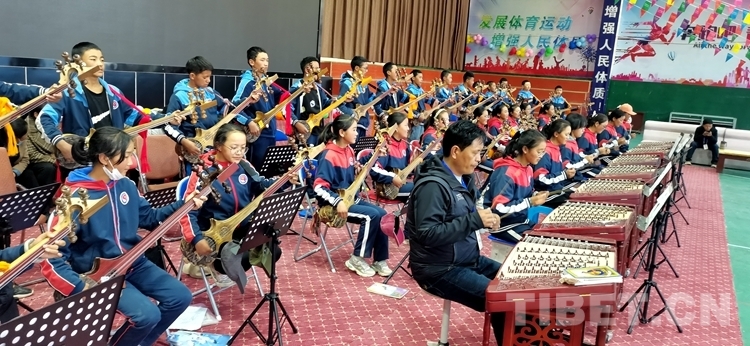 圖為薩迦縣中學(xué)民樂(lè)社在上課