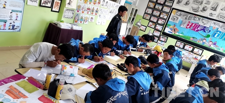 圖為薩迦縣中學(xué)美術(shù)社在上課