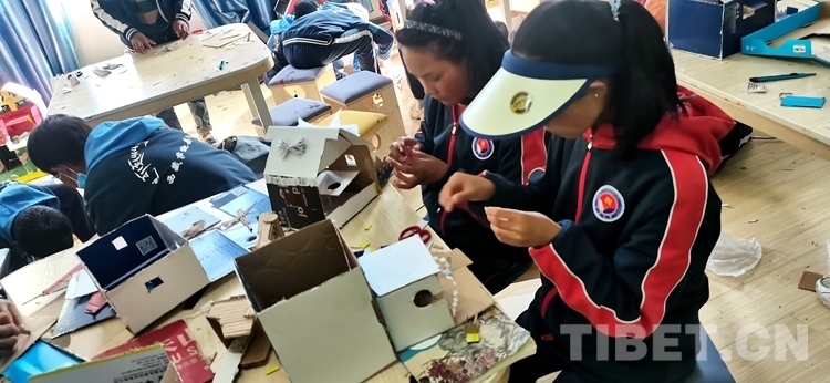 圖為薩迦縣中學(xué)手工剪紙社學(xué)生在完成自己的作品