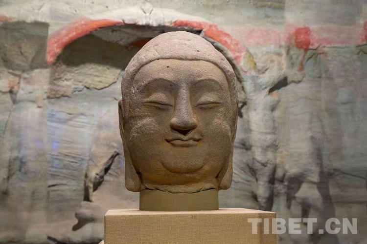 圖為“復(fù)興路上 國(guó)寶歸來”特展上的山西天龍山石窟“第8窟北壁主尊佛首” 國(guó)家文物局供圖
