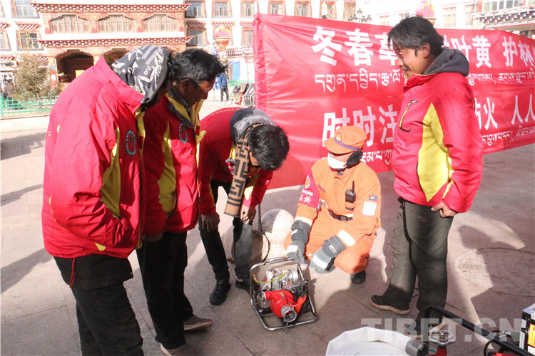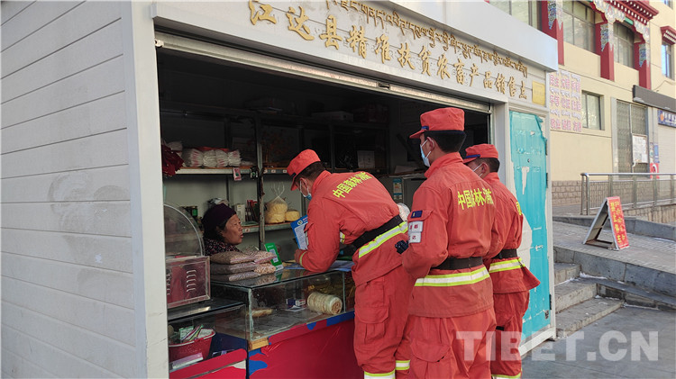 圖為昌都市江達(dá)縣,消防隊員向群眾宣傳消防知識