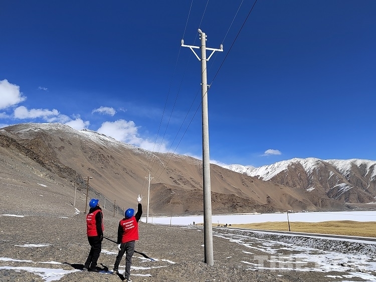 圖為國網西藏阿里公司變電中心人員對阿里巴獅線開展巡視巡檢工作 攝影:次旦多吉