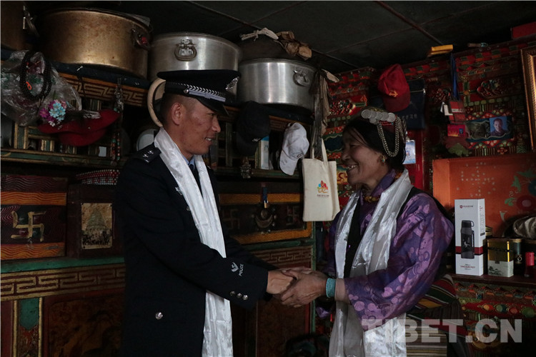 每年除夕開展走訪慰問是派出所必不可缺的工作,民警們大包小包提著油、米、糌粑等日常生活用品,走在他們再熟悉不過的蜿蜒小道上,去邀請村里的孤寡老人和獨自留守在家中的夏爾巴群眾到派出所里共度除夕。