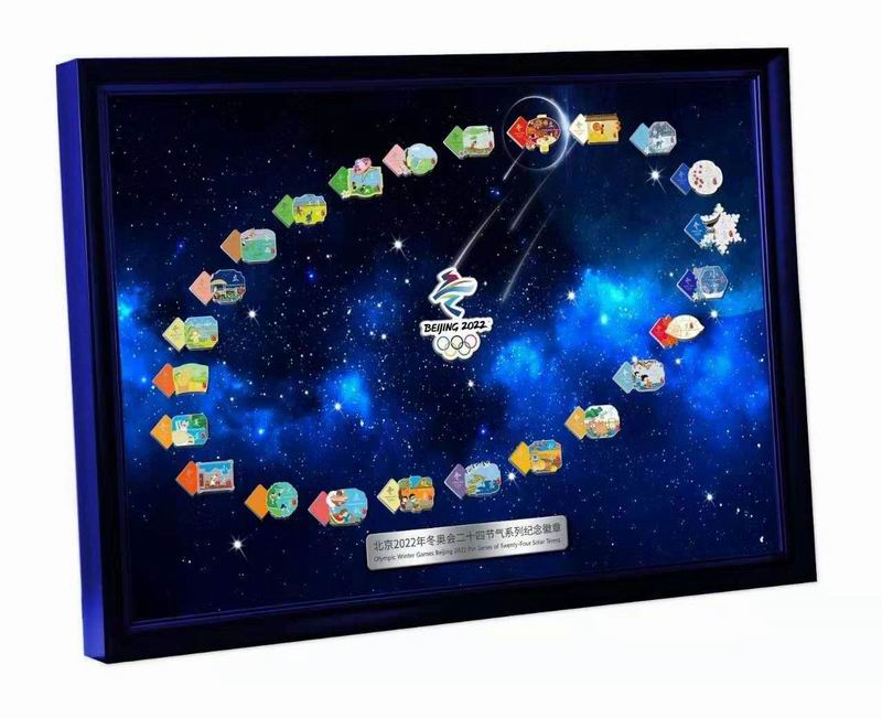 圖為全套“北京2022年冬奧會(huì)二十四節(jié)氣系列紀(jì)念徽章”與專用相框 圖片來源:北京冬奧組委官方網(wǎng)站