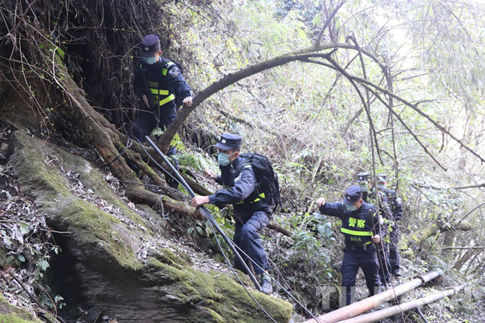 “大家注意安全,我走前面,你們跟著我的腳步走,相互之間照應一下,發(fā)現(xiàn)情況及時匯報。”對于友誼橋執(zhí)勤點負責人的尼瑪云旦來講,帶領戰(zhàn)友們巡山踏查是一天中最重要的工作之一。走在隊伍前面的尼瑪云旦用棍棒將枝繁葉茂的樹枝向兩邊拍打,帶領著大家一步一腳印的向上爬。