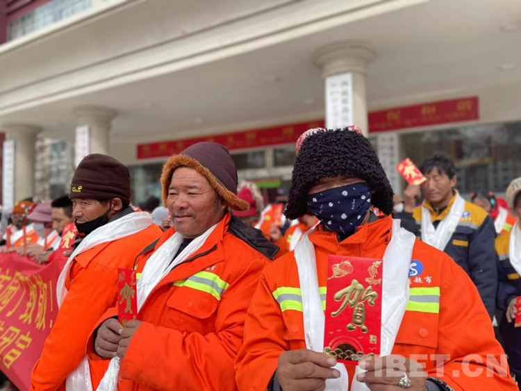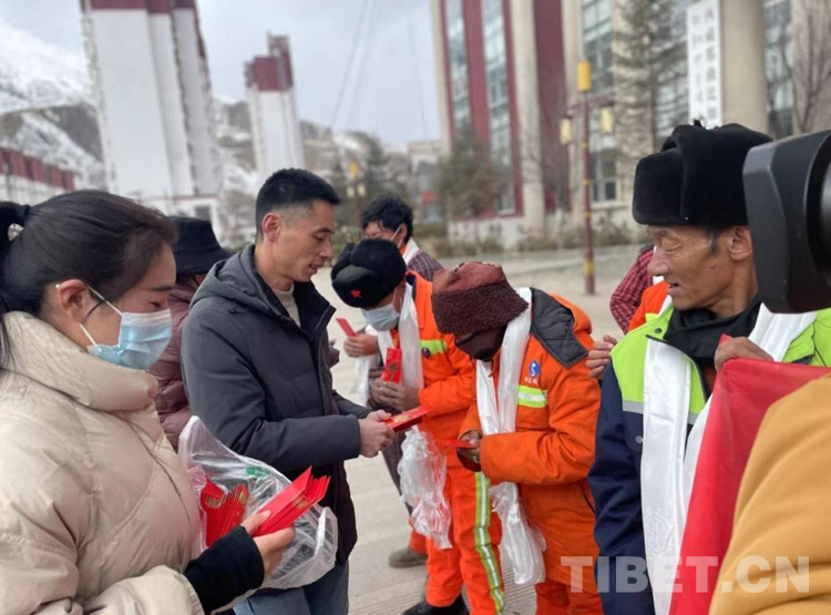 中國(guó)西藏網(wǎng)訊 2月28日,在藏歷新年到來(lái)之際,西藏自治區(qū)那曲市比如縣政府大樓前正在開(kāi)展一場(chǎng)溫暖人心的慰問(wèn)活動(dòng)。“新年好,給大家拜年了,衷心祝愿大家在新的一年里身體健康、工作順利。” 慰問(wèn)現(xiàn)場(chǎng),川英集團(tuán)負(fù)責(zé)人向每位環(huán)衛(wèi)工人和城管協(xié)管員獻(xiàn)上潔白的哈達(dá)致以新年的美好祝福,感謝他們?yōu)楸热绛h(huán)衛(wèi)事業(yè)作出的貢獻(xiàn),并送上1000元慰問(wèn)金。(中國(guó)西藏網(wǎng) 記者/賈華加 比如縣宣傳部供圖)