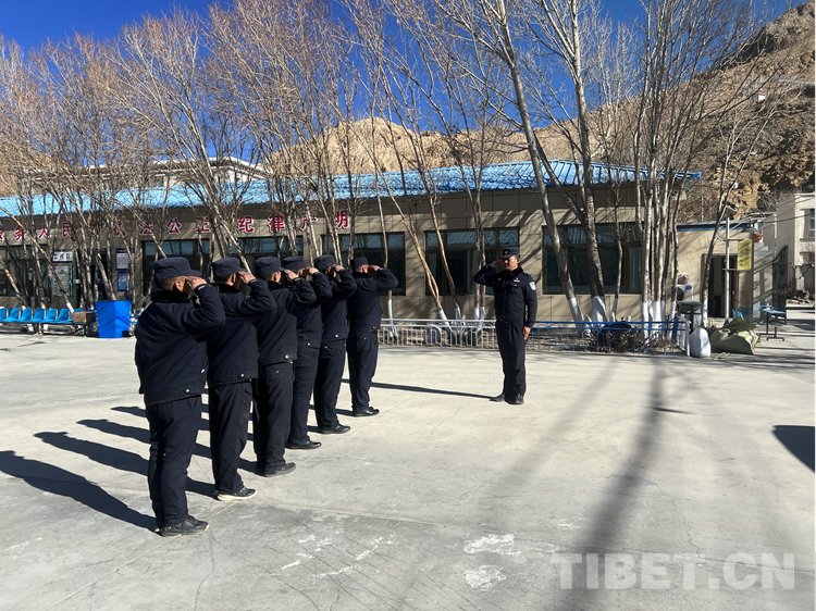 圖為旦增桑布指揮訓(xùn)練輔警