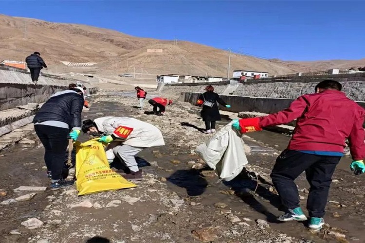 薩嘎縣團(tuán)縣委聯(lián)合縣總工會、縣婦聯(lián)組織本縣青年志愿者在加布河沿線開展“世界水日”之“‘河’我一起,保護(hù)母親河”凈灘活動,西部計劃志愿者、青年志愿者共30余人參與。