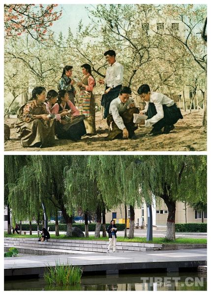 上圖為西藏民族大學(xué)建校初期(時(shí)稱(chēng)西藏公學(xué)),學(xué)生在校園里學(xué)習(xí),圖片由西藏民族大學(xué)提供;下圖為2019年10月,學(xué)生在校園里學(xué)習(xí) 攝影:王媛媛