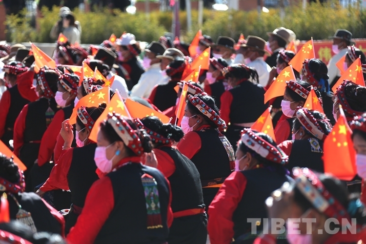 上午10時(shí)30分,伴隨著歌舞《歌頌幸?!?,慶祝西藏百萬(wàn)農(nóng)奴解放63周年專(zhuān)場(chǎng)文藝演出拉開(kāi)帷幕?!睹飨扇藖?lái)》《逛新城》《翻身農(nóng)奴把歌唱》《新舊對(duì)比》等節(jié)目在現(xiàn)場(chǎng)掀起一個(gè)又一個(gè)高潮。舞臺(tái)下,滿是身著盛裝的各族群眾,不斷揮舞著手中的五星紅旗,臉上綻放著感動(dòng)和幸福的笑容。