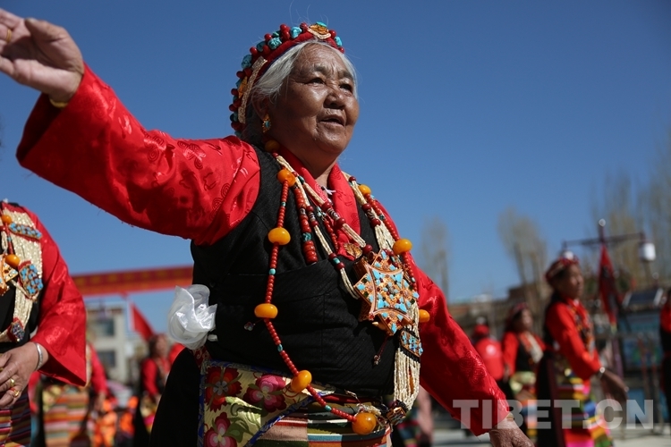 “在我9歲那年,西藏的百萬(wàn)農(nóng)奴翻身得解放,那時(shí)候的陽(yáng)光和今天一樣溫暖。63年后的今天,我們跳起鍋莊,慶祝63年前的新生,慶祝我們這一生能夠享受自由和幸福?!?2歲退休干部索朗卓瑪說(shuō)。