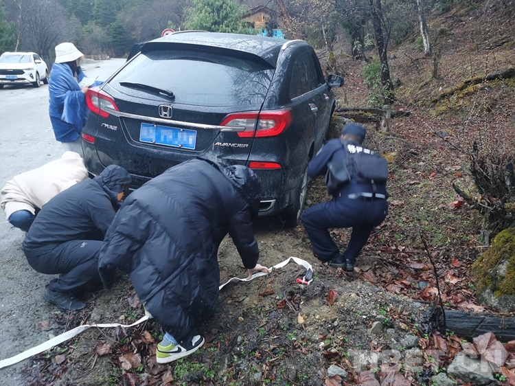 “我們是第一次遇到這種情況,不知道怎么辦,只有請(qǐng)求你們幫助!”當(dāng)?shù)亟诮涤贻^多、道路濕滑,兩名廣東籍女游客在南伊風(fēng)景區(qū)內(nèi)游玩返回途中操作不慎,導(dǎo)致車輛發(fā)生側(cè)滑,撞在路邊石頭上,無法自行脫困。不熟悉當(dāng)?shù)厍闆r的游客,在雨中焦急無助,撥打報(bào)警求助。
