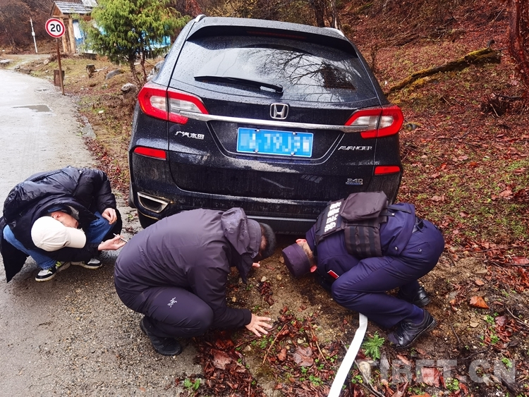 “我們來了,不用慌!”抵達(dá)現(xiàn)場后,移民管理警察向游客送上礦泉水,安撫游客情緒,隨后對(duì)現(xiàn)場進(jìn)行拍照取證,并使用警車幫助車輛脫困。經(jīng)過半個(gè)多小時(shí)的救援,車輛成功脫困,但由于受損嚴(yán)重,在警車護(hù)送下行駛2公里后無法繼續(xù)返回縣城。