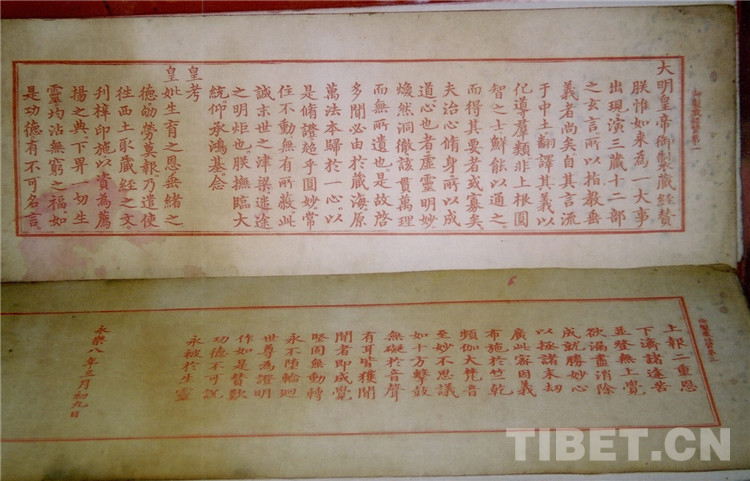 藏文古籍文獻是我國各民族交往交流交融的產(chǎn)物。就藏文古籍文獻中的精品典籍《大藏經(jīng)》而言,從公元7世紀(jì)佛教傳入吐蕃,開始本土化、中國化的進程中,高僧大德不斷進行翻譯、集結(jié)、傳抄、刻版、印刷,形成豐富多彩、卷帙浩繁的《甘珠爾》和《丹珠爾》?!洞蟛亟?jīng)》集成、刊印、流傳離不開歷代中央政府和帝王將相、各民族信眾、高僧大德的支持。比如,西夏時期,黑水城等地首次出現(xiàn)了藏文經(jīng)咒的刻印本。有元一代,《甚深內(nèi)義明本釋》等經(jīng)典刻印本在元大都問世。12世紀(jì),納塘寺堪布覺丹熱智搜集編纂納塘《大藏經(jīng)》時,其弟子從上都一帶寄送了大量的內(nèi)地紙墨。明代,永樂和萬歷皇帝分別在南京和北京完整刊刻印刷藏文《甘珠爾》,開啟了大規(guī)??〔匚奈墨I的歷史。清代,康熙和乾隆朝,在北京刊印了北京版《甘珠爾》和《丹珠爾》,并把藏文《大藏經(jīng)》相繼翻譯成滿文、漢文、蒙古文等多種文字,為我國各民族交往交流交融起到了推動作用。藏文典籍文獻的刊印、流傳、保存,對藏語言文字規(guī)范、佛教文化保護傳承、不斷豐富民族文化等方面起到了重要作用。同時,也進一步促進了各民族交往交流交融。
