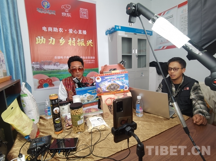 圖為主播在瓊結(jié)縣農(nóng)村快遞分撥配送中心工作室內(nèi)為當(dāng)?shù)靥禺a(chǎn)“代貨” 西藏自治區(qū)交通運(yùn)輸廳供圖