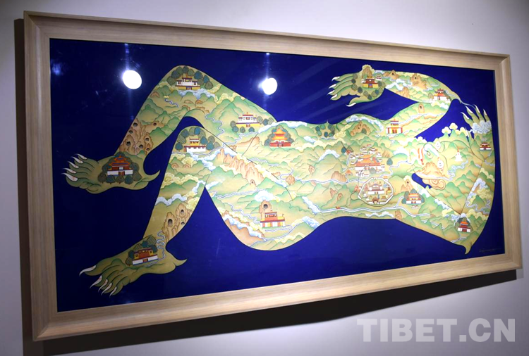 圖為鎮(zhèn)魔圖。作品以西藏“鎮(zhèn)魔圖”傳說為繪畫基礎(chǔ)進(jìn)行了探索性創(chuàng)作,色彩厚重絢麗 攝影:王淑