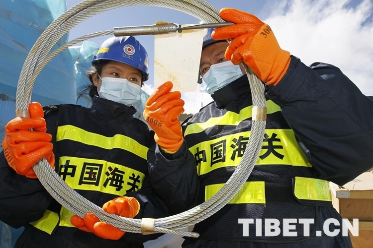 圖為拉薩海關(guān)關(guān)員開(kāi)展屬地查檢 圖片由拉薩海關(guān)提供