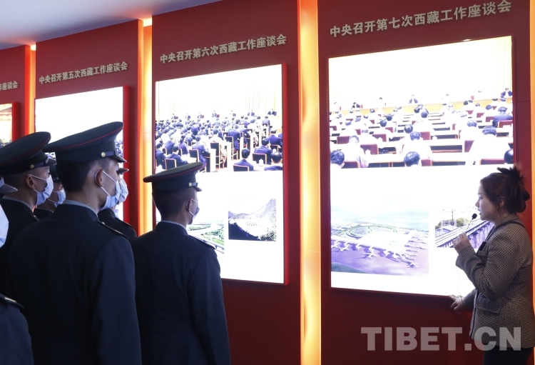 “1959年3月28日,中央政府宣布解散西藏地方政府,徹底砸碎了桎梏西藏上千年的封建農(nóng)奴制,西藏翻開了新的歷史篇章?!痹谥v解員的引導(dǎo)下,該團(tuán)80名青年官兵走進(jìn)西藏百萬農(nóng)奴解放紀(jì)念館,沿著革命先輩的足跡,聆聽著崢嶸歲月里一段段感人至深的紅色故事,2700平方米的展廳中陳列了800多件歷史文獻(xiàn)檔案資糧、文物實(shí)物、圖片和展陳藝術(shù)作品,詳細(xì)介紹了中國共產(chǎn)黨帶領(lǐng)西藏各族人民進(jìn)行偉大的民主改革,使百萬農(nóng)奴翻身得解放的廢奴歷史。