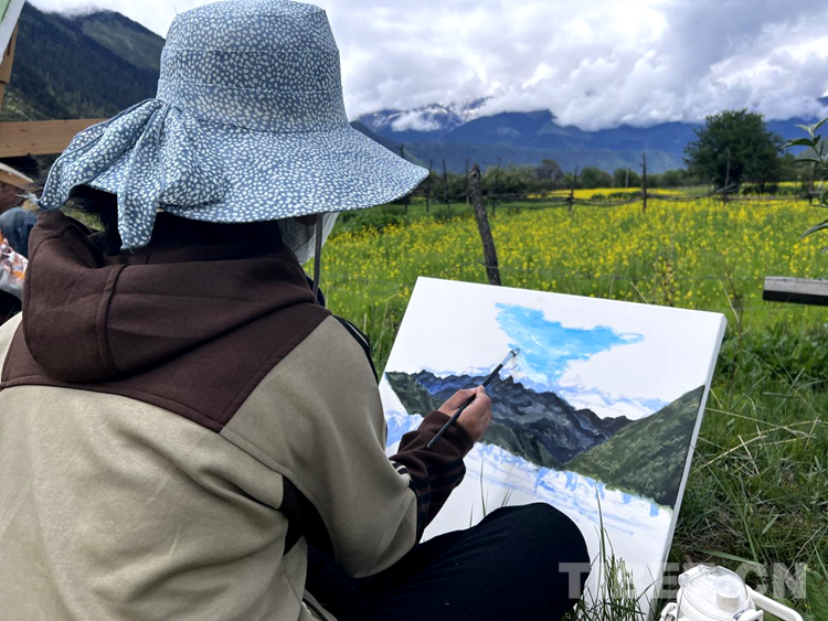“參加這次活動讓我眼界大開,平時(shí)在學(xué)校大部分都是靠手機(jī)里的照片臨摹繪畫,很少走出教室、面對大自然,這次機(jī)會很難得,只想把握時(shí)間盡情創(chuàng)作。明年畢業(yè)后,我會回到老家昌都市左貢縣,當(dāng)一名基層美術(shù)老師,教小朋友們畫畫?!蔽鞑卮髮W(xué)藝術(shù)學(xué)院大三學(xué)生曲西說。