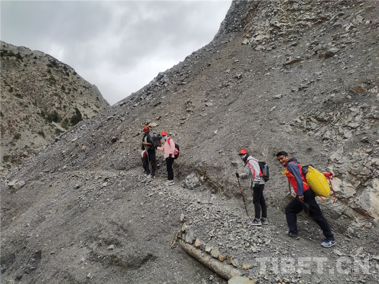我雖然沒去成,但年輕的同事索德代表駐村工作隊,懷著激動的心情上了山。她的主要任務(wù)是巡診急救,宣傳衛(wèi)生、防疫、環(huán)保等知識。這次上山給她留下了深刻的印象。她和村民們跋山涉水徒步前行,背著約20公斤的行囊拄著拐杖徒步14個小時,來到了海拔4800米的寧村蟲草采挖區(qū)域。這一路對于不擅走山路的城里姑娘索德來說,確實是個挑戰(zhàn),尤其是雨后泥濘的道路更是難走,不知道她摔了多少跤。她說,有一段山路就在峭壁上,放眼望下去是不見底的深淵,稍有不慎就可能摔下去粉身碎骨,嚇得她腿腳發(fā)抖發(fā)軟不敢邁步,還是靠有經(jīng)驗的多吉村長把她拽著攙著過去的。就這樣磕磕絆絆地走著摔著,摔著走著,每次摔倒她都有一種委屈和挫敗感涌上心頭,眼睛不時就濕潤了,強忍著不讓眼淚掉下來。最終,在隊友們的關(guān)心和鼓勵下,繼續(xù)前行趕路,索德戰(zhàn)勝了一路的挑戰(zhàn)。