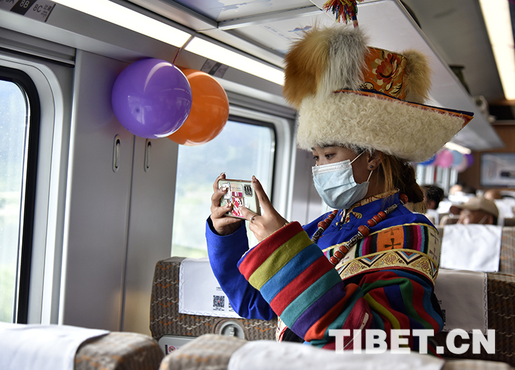 與斯朗旺扎的特別安排不同,游客胡菊萍和章猛飛是恰巧趕上了。一行人于6月23日抵達(dá)拉薩,在游覽了山南市的昌珠寺、雍布拉康等景點(diǎn)后,準(zhǔn)備從山南搭乘火車前往林芝繼續(xù)游玩。胡菊萍告訴記者,2007年,她也曾搭乘火車從西寧到拉薩旅游?!澳菚r(shí)候,翻唐古拉山,身體特別不舒服。今天乘坐復(fù)興號(hào),感覺特別好。過隧道時(shí),一點(diǎn)都沒有耳鳴的反應(yīng),手機(jī)也有信號(hào)。”胡菊萍打算多拍一點(diǎn)車窗外的景色,留存回憶的同時(shí)也要分享給家里人。