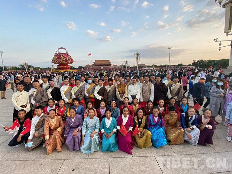 圖為2021年10月1日,拉薩市北京中學(xué)首屆“北京班”進(jìn)京游學(xué),參觀天安門廣場(chǎng)升旗儀式