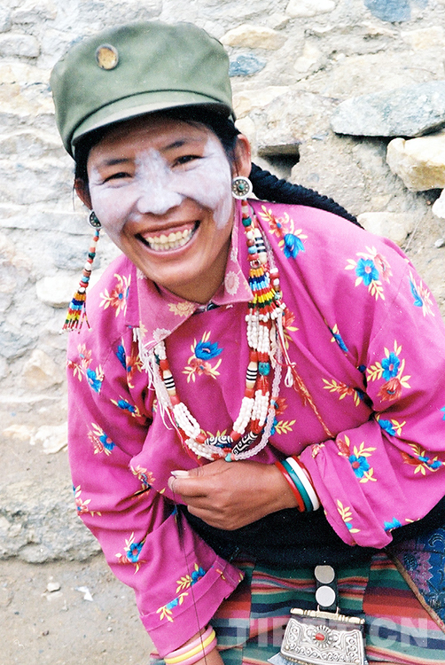 這是藏北申扎縣一位出行的牧女,使用紅顏料在臉頰涂上圓圓的“高原紅”,來作為美的印記(唐召明1991年攝)