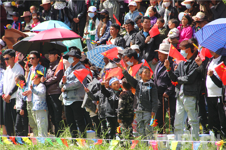 活動現(xiàn)場,精彩的歌舞點燃了夏日的熱情?!遁x煌百年》舞出了人民群眾喜迎黨的二十大的激動心情;衣袖飄舞,《勒噶布》舞出了人民群眾對美好生活的向往;節(jié)奏鏗鏘,《草原上的雄鷹》舞出了人民群眾團結(jié)一致奮進新時代的信心……舞動著手中的五星紅旗,席地而坐的觀眾發(fā)出陣陣歡呼。
