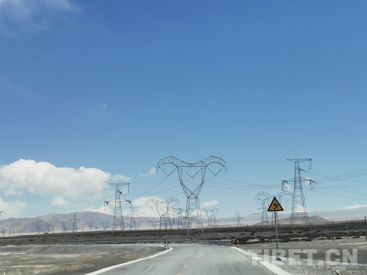 我們的車行駛在平均海拔超過4000米的318國道上,從日喀則市到昂仁縣、薩嘎縣、仲巴縣,車窗外的風景不斷變化著。有廣袤無垠的平地,也有像孔唐拉姆山這樣俊秀挺拔的高山,還有像我們一樣在這蒼茫的大地上急速行駛的車輛。旅行途中一路陪伴我們的是一座座輸電鐵塔,它們或高聳入云,或有著“崗巴羊”羊頭一樣別致的造型。這一條風景線,更是西藏的“光明線”。