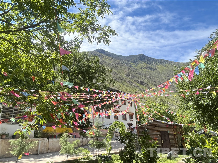 走進位于西藏自治區(qū)昌都市芒康縣曲孜卡鄉(xiāng)達許村的格桑花園農(nóng)家樂,綠草如茵,小木屋包房錯落地掩映在郁郁蔥蔥的樹木當(dāng)中。一株大核桃樹亭亭如蓋,樹上的秋千給園子增添幾分童趣。