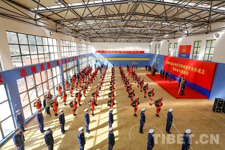 圖為昌都市高山地質(zhì)災(zāi)害救援專業(yè)隊(duì)成立暨裝備交接儀式現(xiàn)場