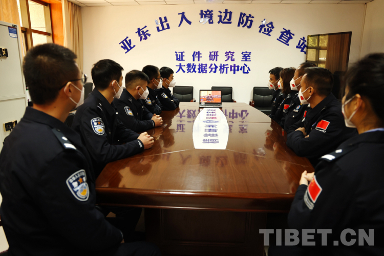 圖為亞東出入境邊防檢查站組織民警收看黨的二十大開幕會(huì) 攝影:劉向遠(yuǎn)
