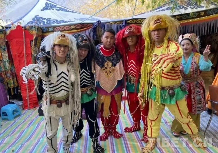 起初抱著學(xué)習(xí)的態(tài)度來(lái)到雪巴拉姆藏戲團(tuán)的旦增益西,被各位前輩對(duì)藏戲的執(zhí)著和堅(jiān)守打動(dòng)了?!把┌屠凡貞驁F(tuán)共有56名成員,團(tuán)隊(duì)的年齡層次從86到16歲。團(tuán)隊(duì)里的每個(gè)人都是一專多能,因?yàn)槭杖氩欢?,大家也都身兼副業(yè),但是沒有人放棄學(xué)習(xí)藏戲?!?nbsp;