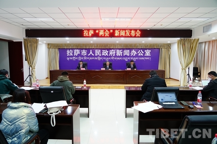 圖為西藏自治區(qū)拉薩市“兩會(huì)”新聞發(fā)布會(huì)現(xiàn)場(chǎng)