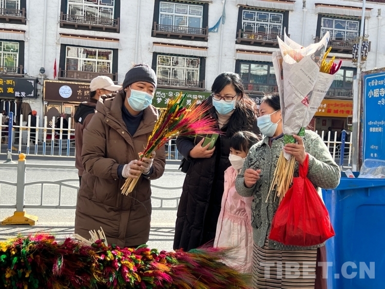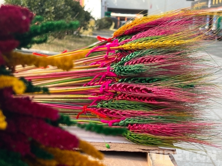 圖為年貨市場里的“羅薩梅朵”(青稞穗) 攝影:德吉卓瑪