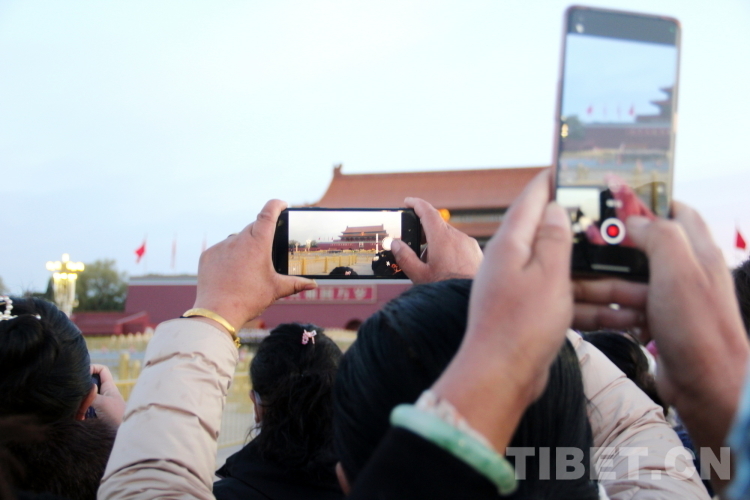 圖為“2023年西藏基層?jì)D聯(lián)干部赴京學(xué)習(xí)參觀團(tuán)”成員們紛紛用手機(jī)記錄下國旗護(hù)衛(wèi)隊(duì)行進(jìn)的英姿 攝影:陳浩力