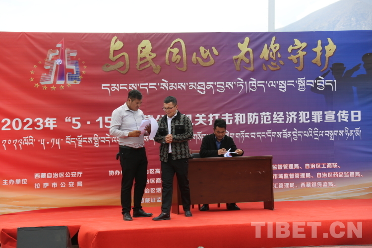拉薩市是今年西藏“5?15”打擊和防范經(jīng)濟(jì)犯罪宣傳活動(dòng)的主展示地。記者在拉薩市集中宣傳活動(dòng)現(xiàn)場(chǎng)看到,各參加單位、部門(mén)、企業(yè)采取發(fā)放宣傳資料物品、講解各類常見(jiàn)經(jīng)濟(jì)犯罪類型、教授辨識(shí)假冒偽劣產(chǎn)品知識(shí)、傳授防騙打假經(jīng)驗(yàn)、為群眾答疑解惑等形式,集中宣傳了養(yǎng)老詐騙、合同詐騙、非法集資、傳銷以及如何識(shí)別假煙、假酒、假機(jī)油等。