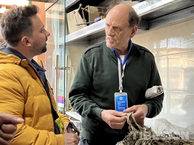 圖為5月16日參訪團成員在農(nóng)民專業(yè)合作社了解藏紙原材料“狼毒草” 攝影:德吉卓瑪