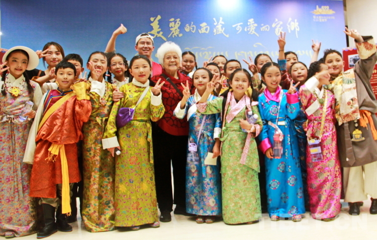 圖為《洗衣歌》編導、詞作者李俊琛(前排左五)與西藏珠峰少年合唱團的小朋友們合影 攝影:劉莉