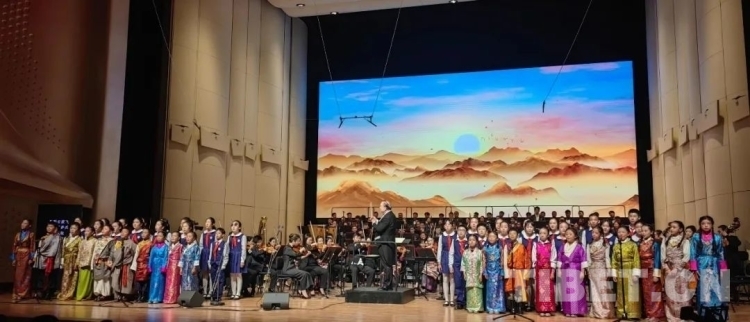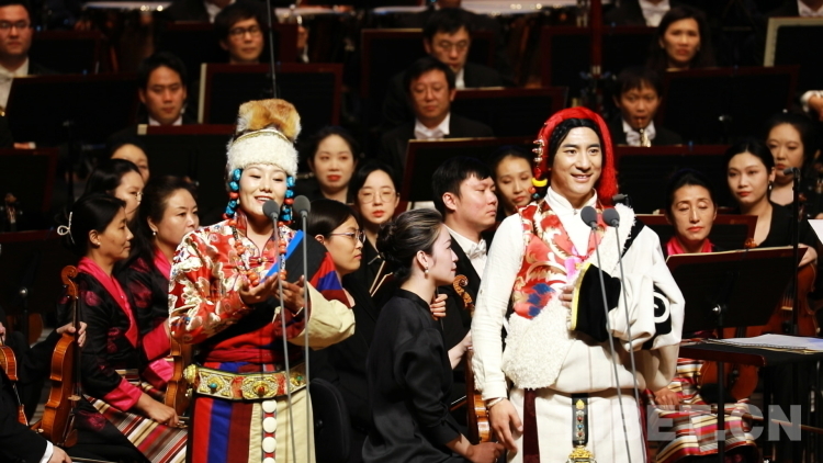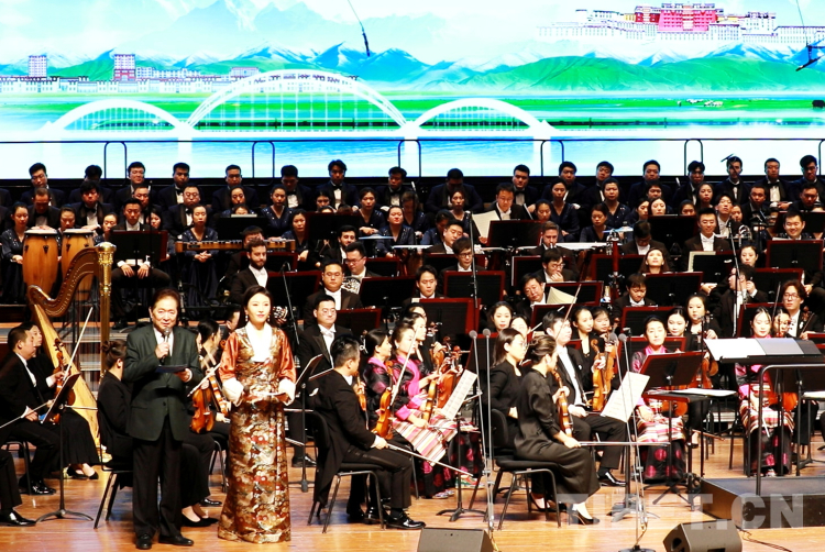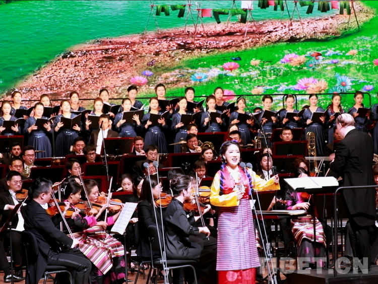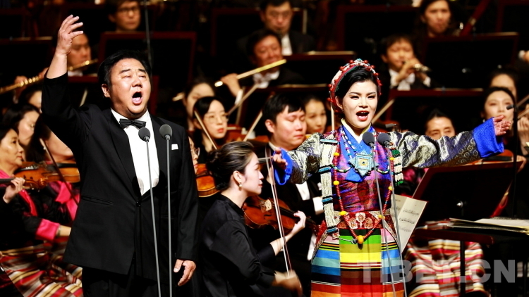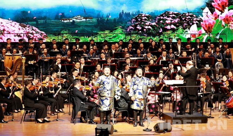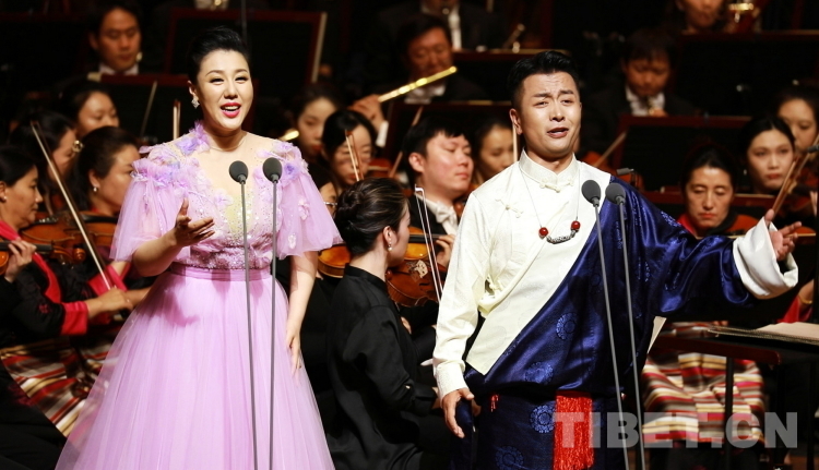 圖為中音歌唱家、國家一級演員霍勇,西藏自治區(qū)歌舞團青年女高音次仁央宗領合唱《美麗的西藏 可愛的家鄉(xiāng)》 攝影:劉莉