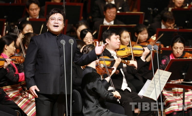 圖為中央歌劇院首席男高音歌唱家、國家一級演員李爽領合唱《西藏 我的第二故鄉(xiāng)》 攝影:劉莉